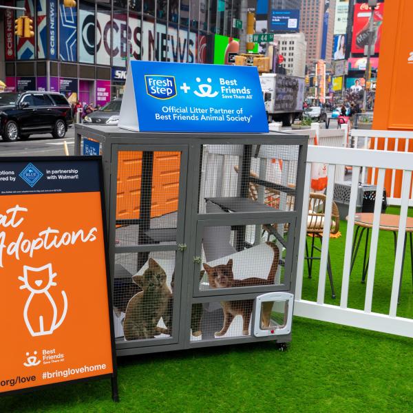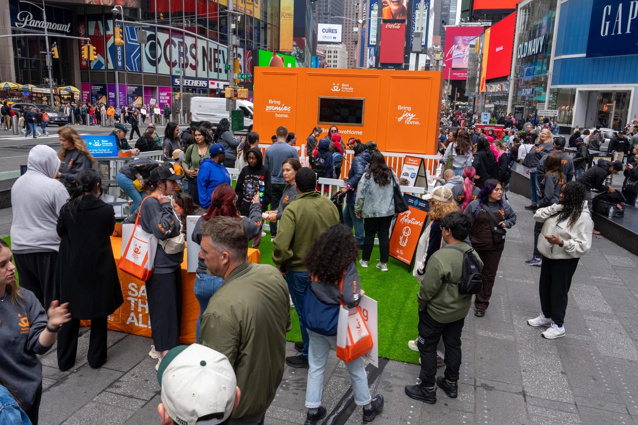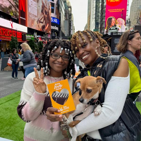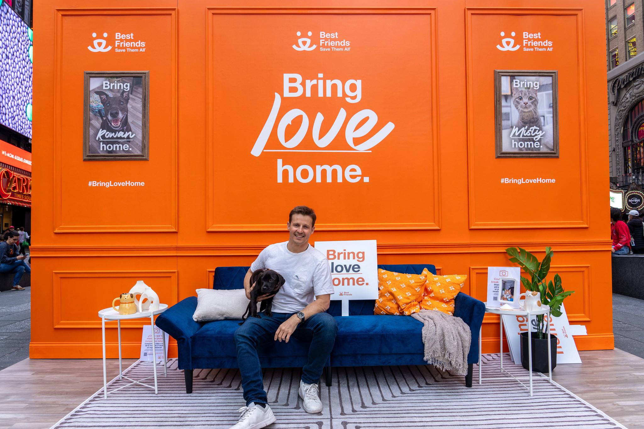 Todas las mascotas merecen un hogar. Y no importe donde vivas, la adopción de una mascota trae amor a tu casa. Un día de abril en Times Square de la Ciudad de Nueva York, Best Friends embarco una nueva campaña nacional llamada Trae Amor a Casa con una activación inmersiva para celebrar lo maravilloso que es traer una mascota a casa.