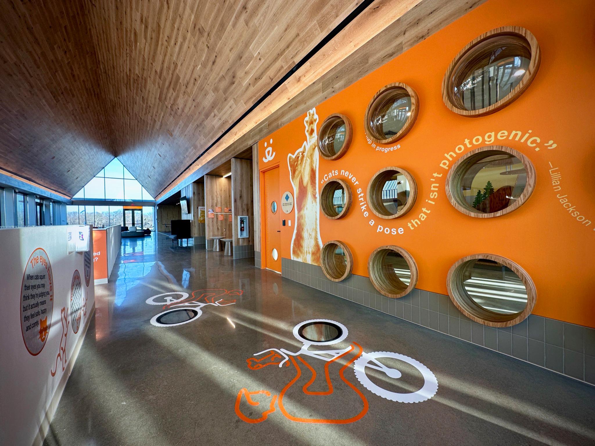 The space features open areas perfect for getting to know adoptable dogs and cats, fun activities for humans of all ages, a DIY dog-bathing center, a café where guests can hang out with cats and kittens, a pet food and supplies pantry, and much more.